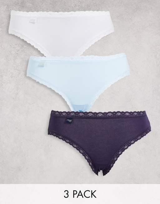 Sloggi - 24/7 Weekend - Lot de 3 culottes taille basse bordées de dentelle - Combinaison de bleus