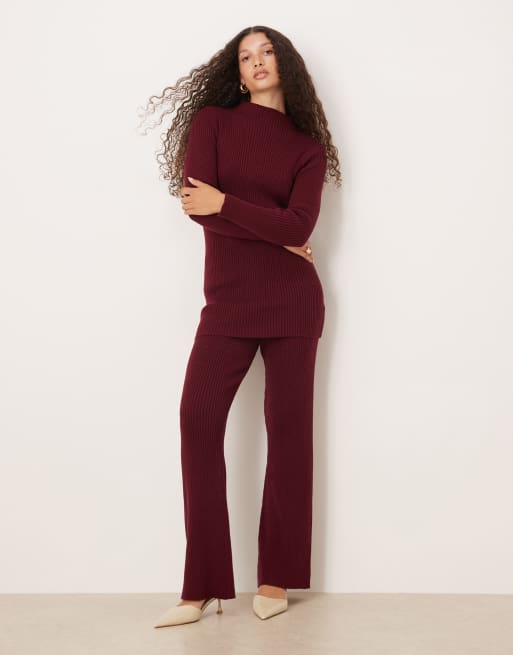 SNDYS - Pantalon d'ensemble ample en maille côtelée - Bordeaux