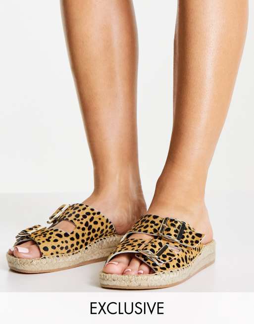 Solillas - Exclusivité - Sandales à boucles en cuir style espadrilles - Léopard