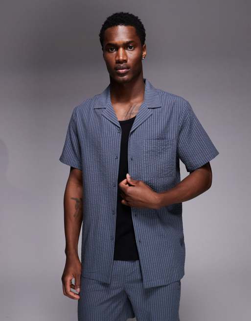 South Beach - Chemise en crépon - Bleu pétrole