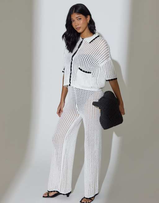 South Beach - Ensemble chemise et pantalon au crochet - Blanc