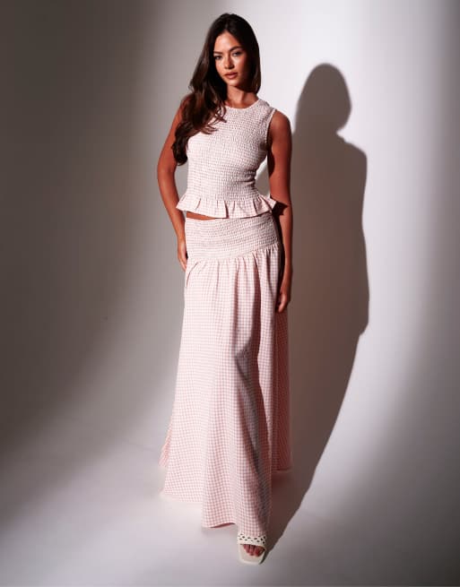 South Beach - Ensemble texturé froncé à carreaux vichy - Corail