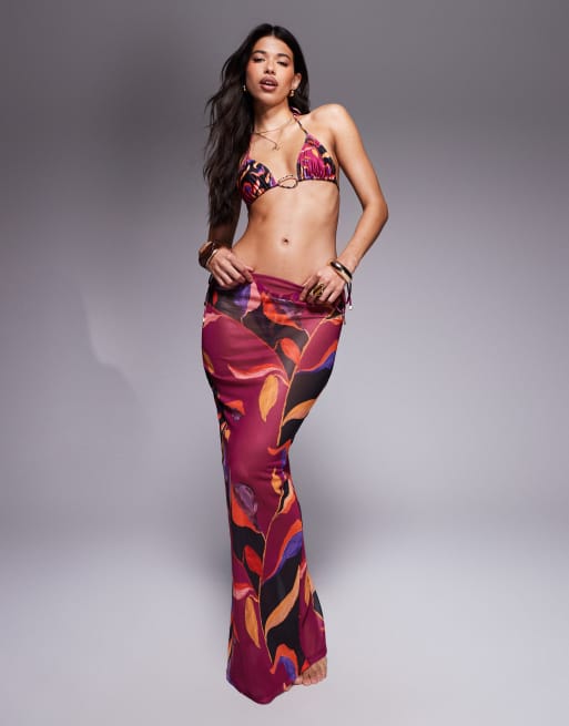 South Beach - Jupe de plage longue en tulle imprimé abstrait - Magenta