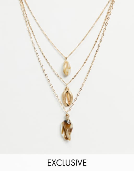 South Beach - Lot de colliers avec coquillages fantaisie - Doré