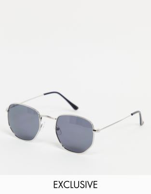 South Beach - Lunettes de soleil hexagonales à monture argentée