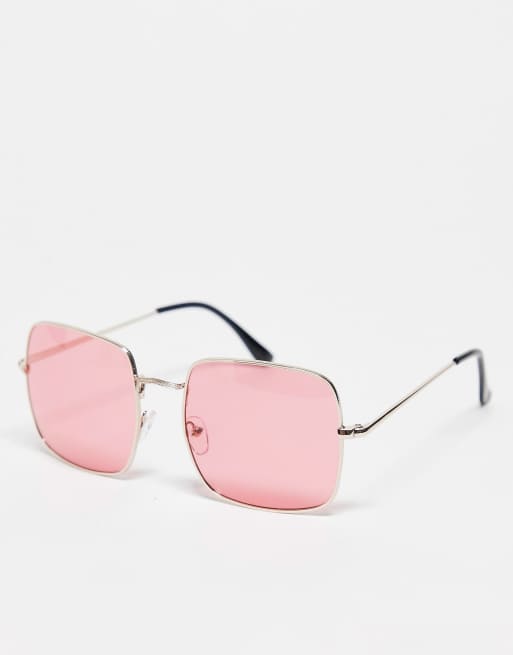 South Beach - Lunettes de soleil oversize à monture carrée en métal - Rose