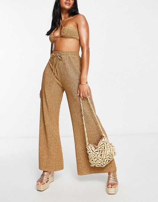 South Beach - Pantalon de plage oversize métallisé - Doré