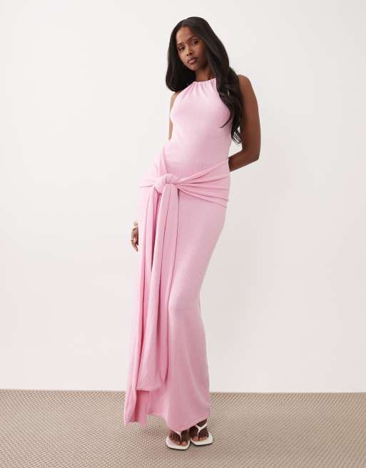 South Beach - Robe longue à dos nu et taille croisée - Rose pastel