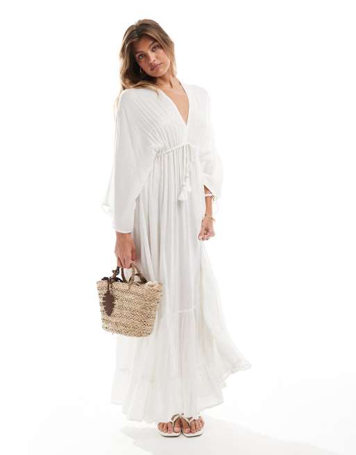 South Beach - Robe longue effet métallisé à manches kimono - Blanc