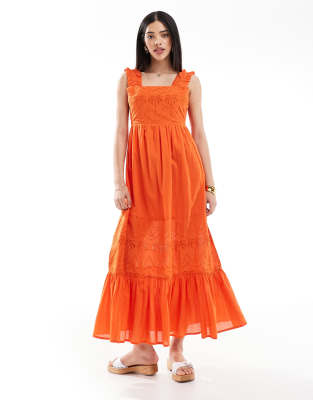 South Beach - Robe longue nouée dans le dos avec broderies palmiers - Orange