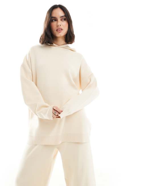 South Beach - Sweat à capuche en maille avec ourlet côtelé - Crème