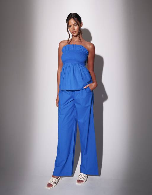 South Beach - Top bandeau à smocks et pantalon - Bleu