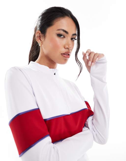 South Beach - Top sous-couche à manches longues avec col zippé et bande style sport - Crème