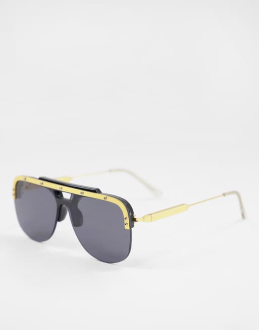 Spitfire - TB-795 - Lunettes de soleil aviateur avec barre supérieure dorée - Noir