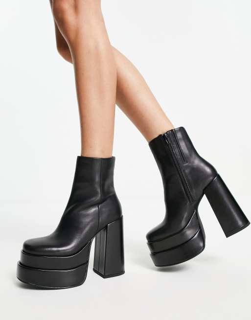 Steve Madden - Cobra - Bottes en cuir à talon et semelle plateforme - Noir