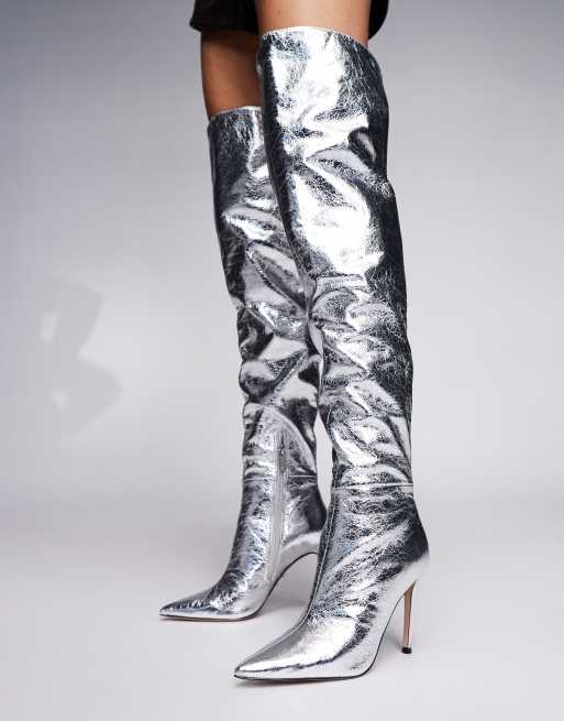 Steve Madden - Epic - Cuissardes pointues à talon aiguille - Argenté