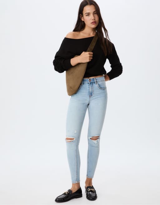Stradivarius - 1420 - Jean skinny à taille basse - Bleu denim