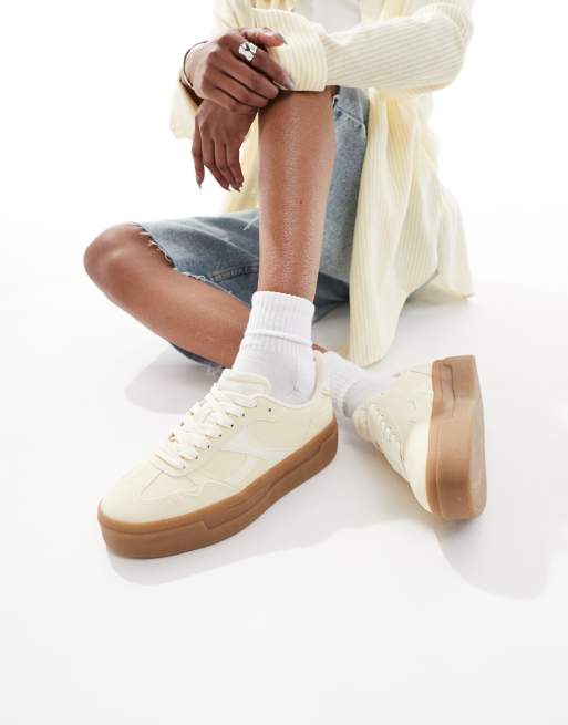 Stradivarius - Baskets avec semelle à plateforme gomme - Jaune pâle