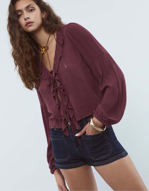 Stradivarius - Blouse ample à volants - Violet