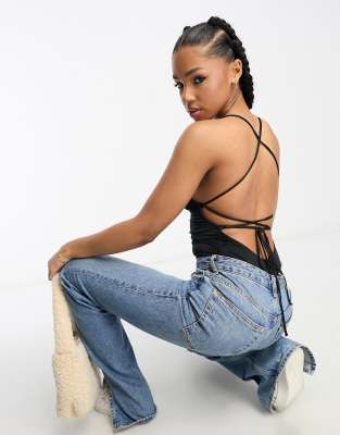 Stradivarius - Body à bretelles fines et dos ouvert - Noir