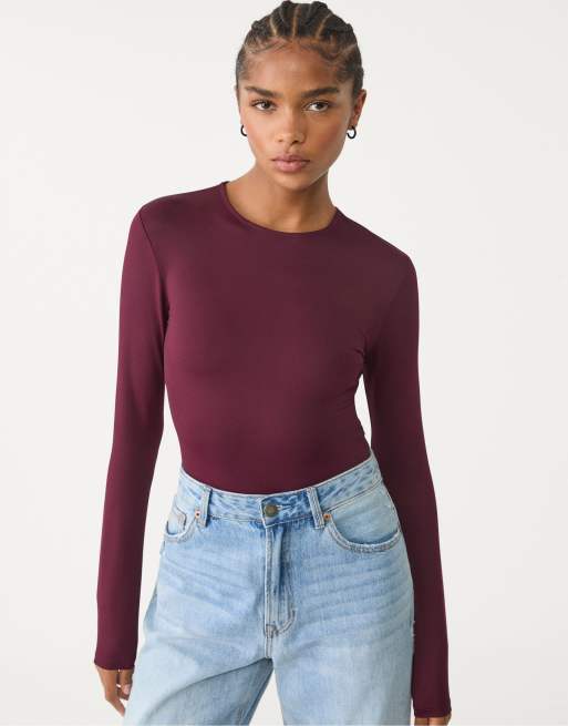 Stradivarius - Body à manches longues en polyamide - Violet