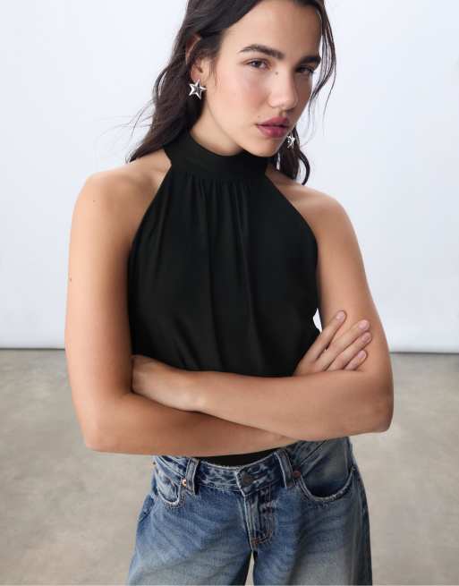 Stradivarius - Body dos nuit à manches bouffantes - Noir