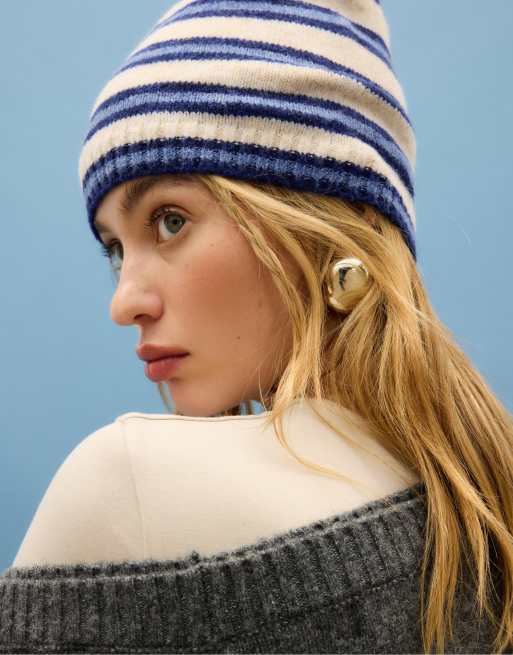 Stradivarius - Bonnet rayé - Bleu