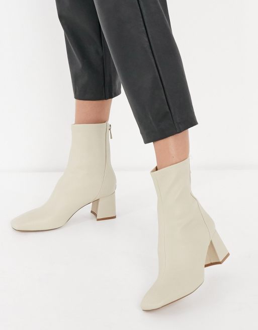 Stradivarius - Bottines à talon mi-haut et couture sur le devant - Écru