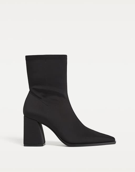 Stradivarius - Bottines effet néoprène à talon haut - Noir