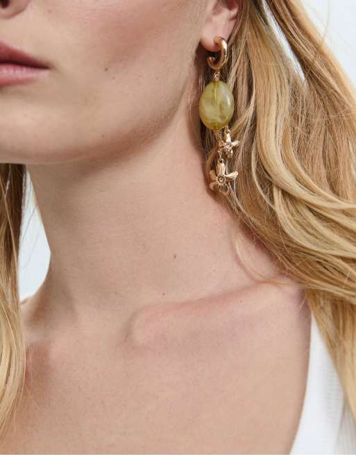 Stradivarius - Boucles d'oreilles à pendentif fleur - Vert