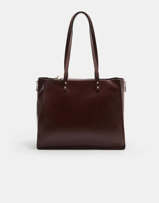 Stradivarius - Cabas avec fermeture éclair latérale - Marron