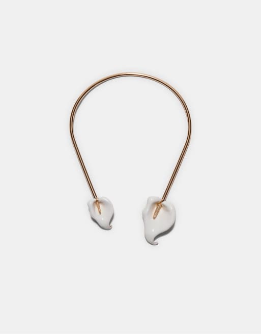 Stradivarius - Calla - Collier ras de cou avec fleur de lys - Écru