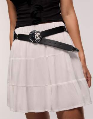 Stradivarius - Ceinture festonnée semi-large - Noir