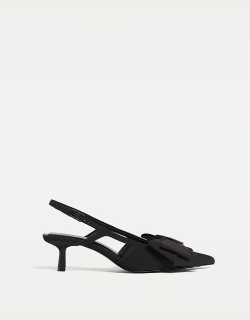 Stradivarius - Chaussures à petit talon avec nœud et bride arrière - Noir
