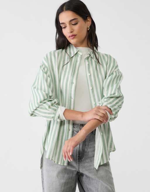 Stradivarius - Chemise en lin mélangé à rayures - Vert