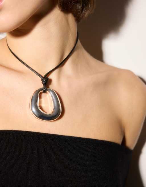 Stradivarius - Collier en cordon avec breloque - Gris