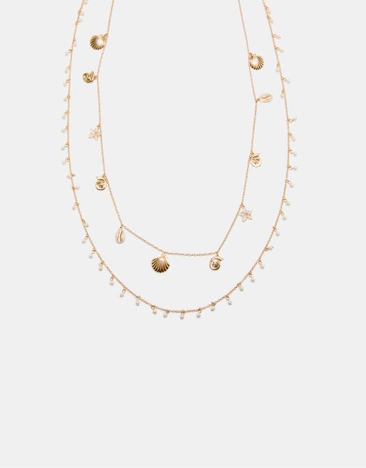 Stradivarius - Collier multi-positions à petites breloques océan - Doré