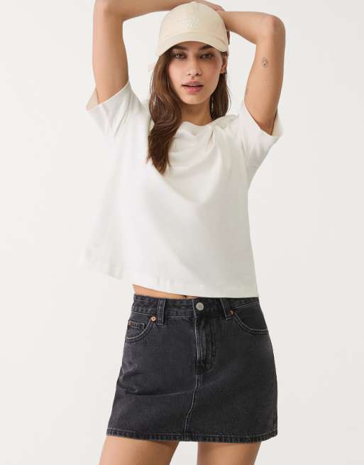 Stradivarius - D60 - Mini-jupe en jean - Gris foncé