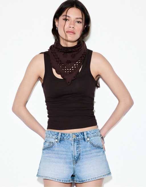 Stradivarius - D79 - Short à taille basse en jean - Bleu clair moyen
