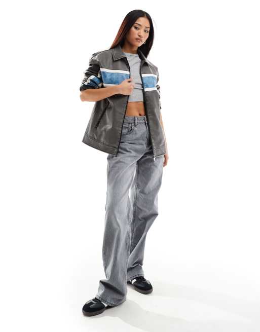 Stradivarius - D92 - Jean droit large - Gris moyen