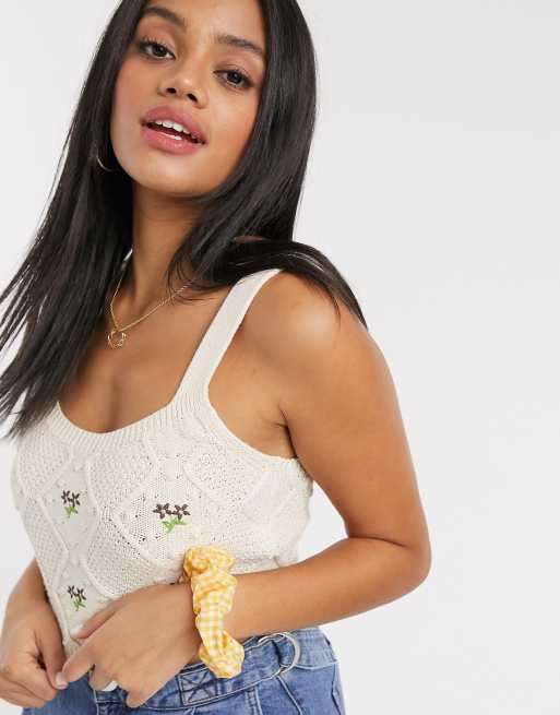 Stradivarius - Débardeur d'ensemble en maille brodée - Beige
