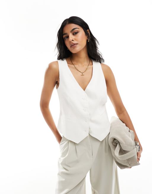 Stradivarius - Gilet de costume aspect lin - Blanc