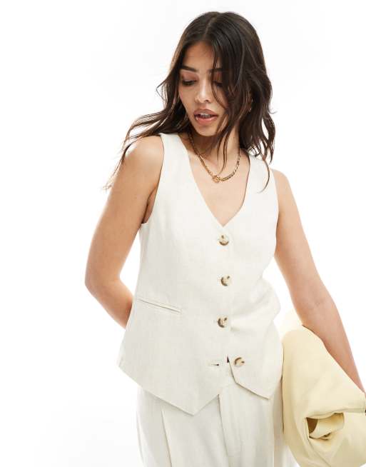 Stradivarius - Gilet de costume aspect lin - Blanc