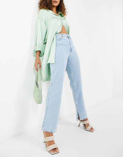 Stradivarius - Jean droit à ourlet fendu - Délavé clair