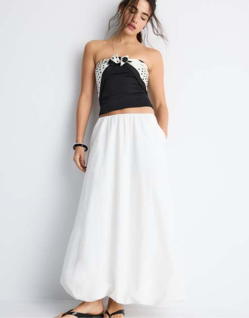 Stradivarius - Jupe longue bouffante en popeline - Blanc