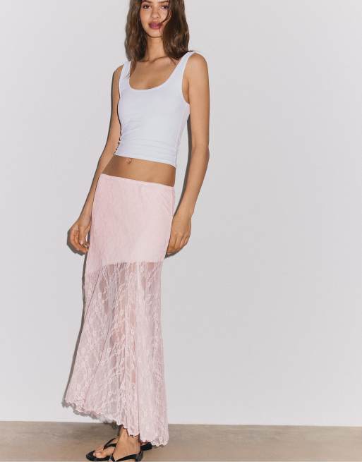 Stradivarius - Jupe longue en dentelle - Rose pastel