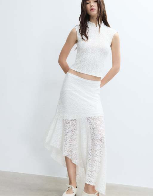 Stradivarius - Jupe mi-longue et asymétrique en dentelle - Écru