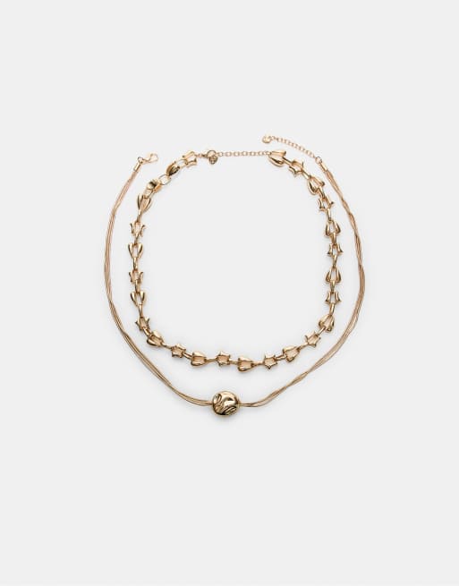 Stradivarius - Lot de 2 colliers ornés de breloques imposantes - Doré