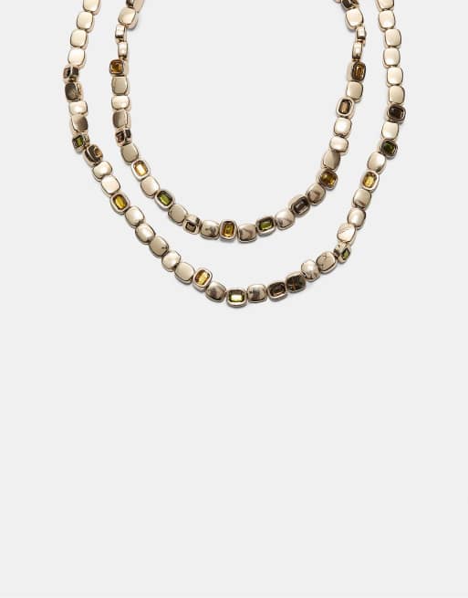 Stradivarius - Lot de 2 colliers ornés de perles métalliques - Doré