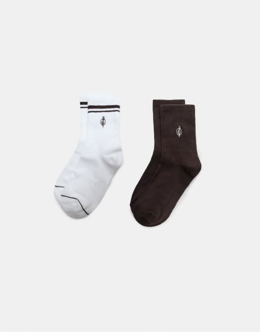 Stradivarius - Lot de 2 paires de chaussettes à rayures et broderie - Marron